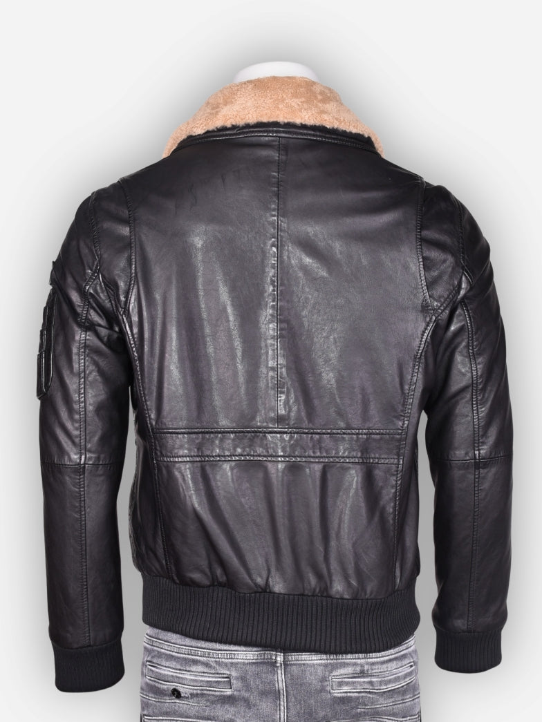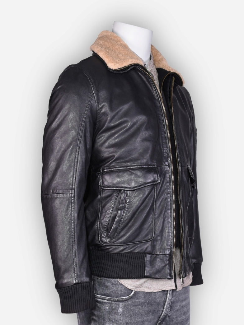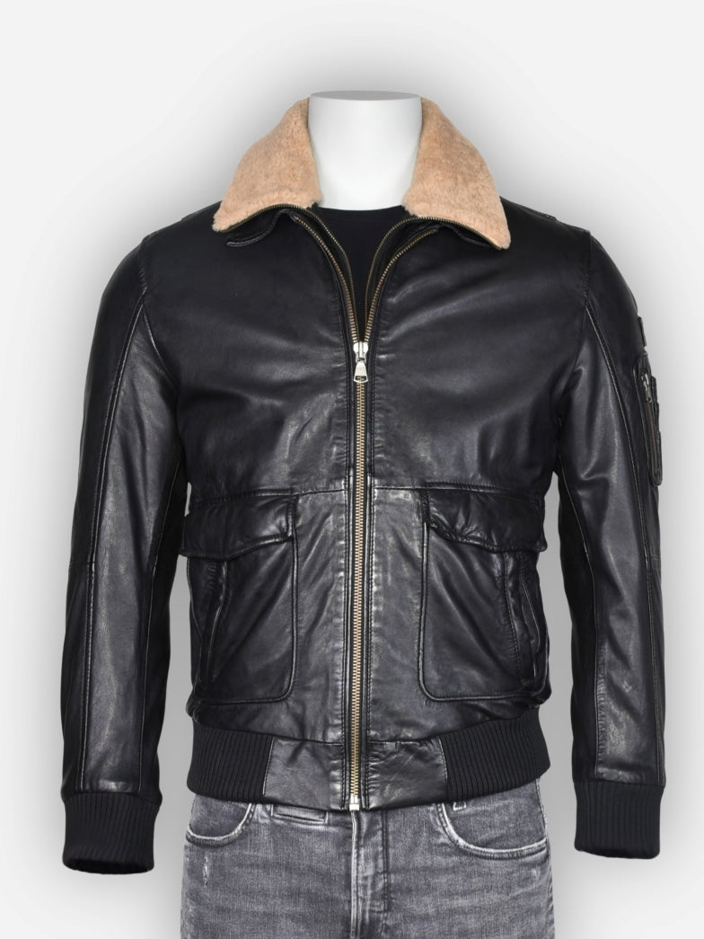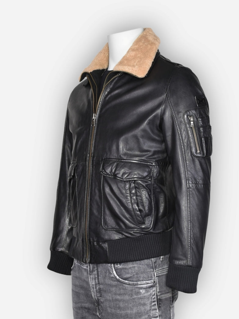 Klassisch, markant, zeitlos! Diese hochwertige Pilotenjacke aus weichem schwarzem Lammnappa überzeugt durch ihren authentischen Look und den abtrennbaren Lammfellkragen. Ein echter Klassiker, der nie aus der Mode kommt.
