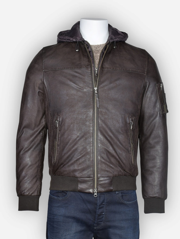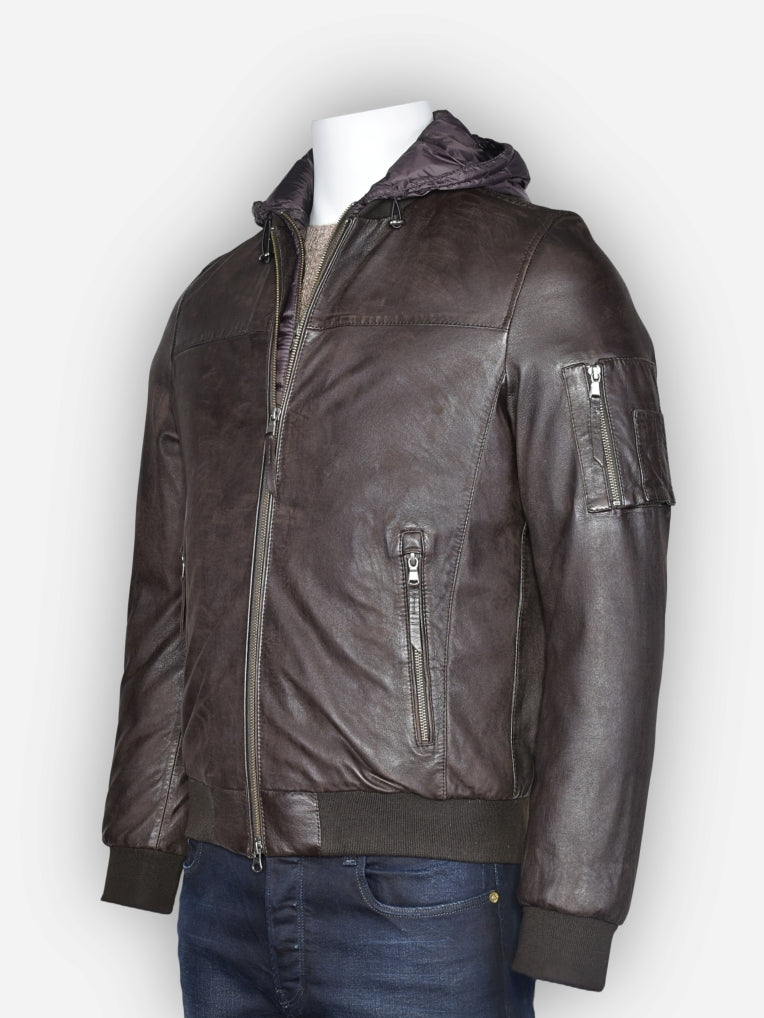 Diese stylische Collegejacke aus weichem Nubukleder vereint sportliches Design mit urbanem Charakter. Die austrennbare Kapuze aus Nylon verleiht der Jacke einen wandelbaren Look!